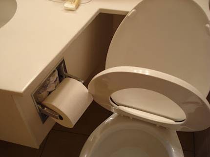 NO OLVIDEN AGENDAR ESTOS PROFESIONALES, PARA REALIZAR EVENTUALES MODIFICACIONES O AMPLIACIONES EN SUS HOGARES. Cómo pudo pasar ésto la fase de proyecto? Qué *** es esto? Y bue… Debieron haber tomado algunas medidas primero! Aparentemente, se trata de que no vean la cara solamente… pero el resto está todo bien ok? El asiento de roble es un toque fino. Y el propósito de la puerta es…? Para llega a agarrar el papel sentado tenés que tener los brazos de un orangután. Esto sería el «medio baño» que aparecía en el aviso clasificado?…